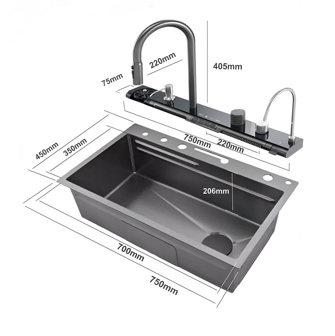 Chiuveta multifuncțională Zerix ZH7546-SET-04 Decor Nano-Black 750×460 mm este un modul compact și elegant.