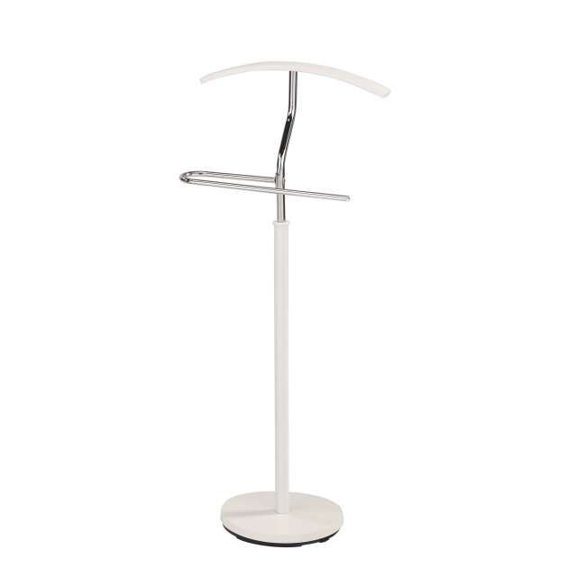 Suport pentru aranjarea hainelor pe umeraș, realizat din structură metalică vopsită electrostatic cu elemente din lemn și metal cromat. Bază executată din plastic durabil, acoperită cu suprafață din metal vopsit.
