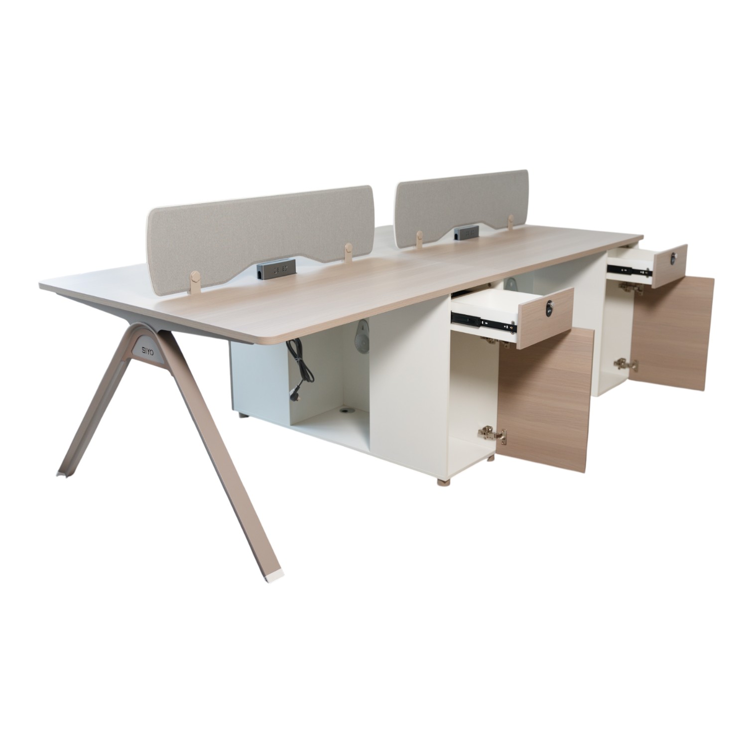 Masa Birou 4 locuri FRANKFURT este o alegere strategică pentru companii care doresc să combine funcționalitatea cu estetica modernă, oferind echipelor un spațiu de lucru comun, confortabil și organizat.
