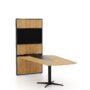 Masa de conferință cu panou și stand TV integrat este o piesă versatilă, ideală pentru spații moderne de lucru. Structura solidă este susținută de picioare metalice vopsite în câmp electrostatic, oferind durabilitate și un aspect elegant.